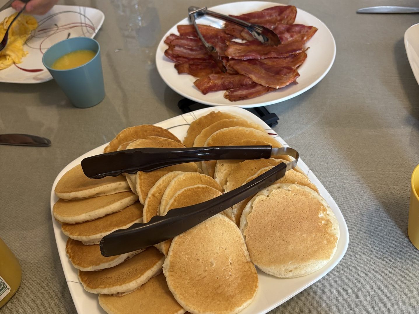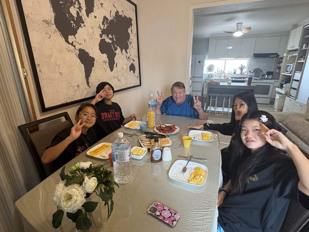 朝ごはんはパンケーキに、ベーコン、卵と、アメリカらしい朝ごはんを楽しみました。
