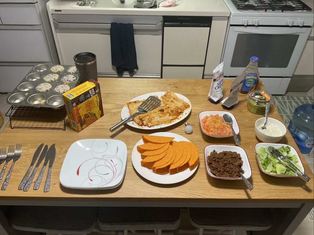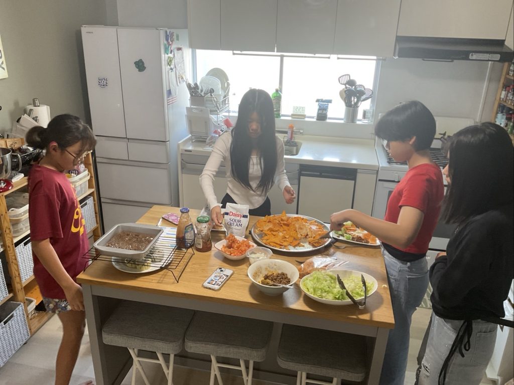 この日はディナーにタコスを作りました。まちなか留学ではホストファミリーから人気なメニューの一つです。