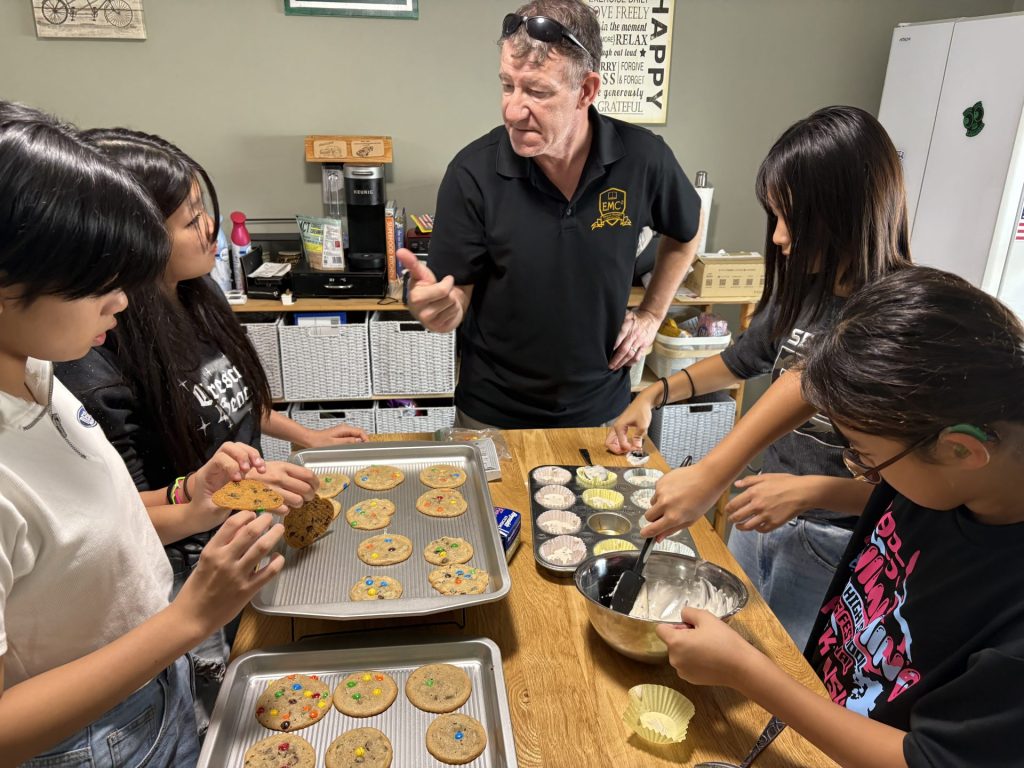 ランチとお買い物から帰ってきた後はお菓子作り!チョコレートクッキーとブルーベリーマフィンを焼きます。ホストファミリーからレシピを教わりながらみんなでクッキング!