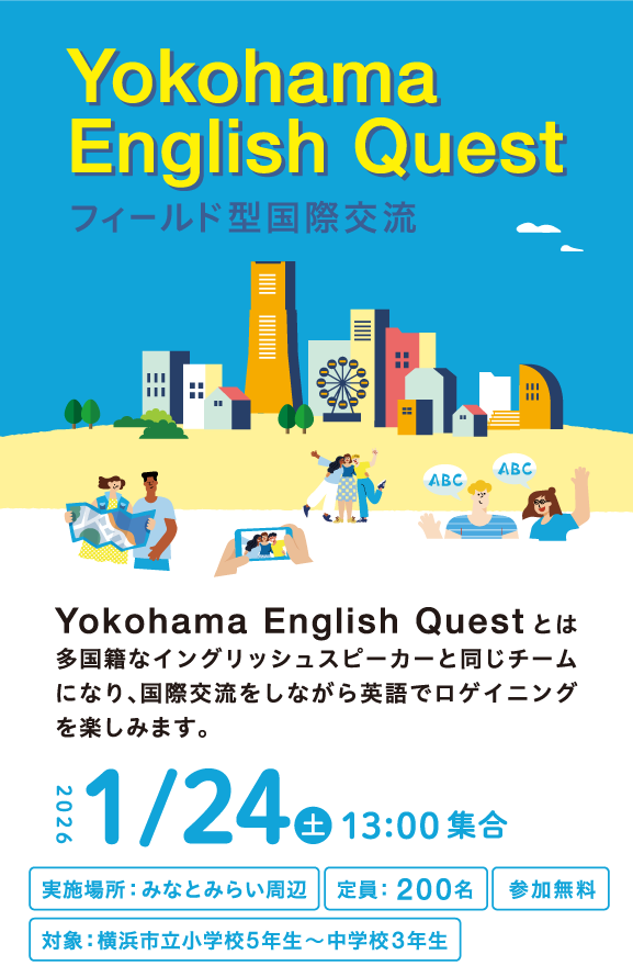 より多くの皆さまにご参加の機会を提供するため、Yokohama English Quest(YEQ)へのご参加は1回のみ可能となります。